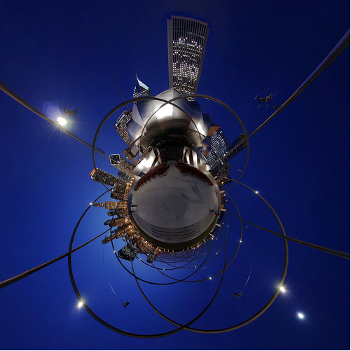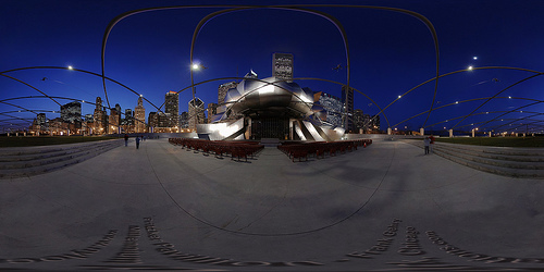 à partir d’un panorama du Millenium Park de Chigaco, avec le Pavillon Pritzker de Franck Gehri: