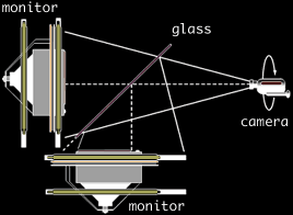 sur les moniteurs, on ne fait rien d’autres que d’afficher l’image prise par la caméra… Il s’agit d’une version améliorée de ce qu’on peut féjà obtenir avec une simple webcam :
